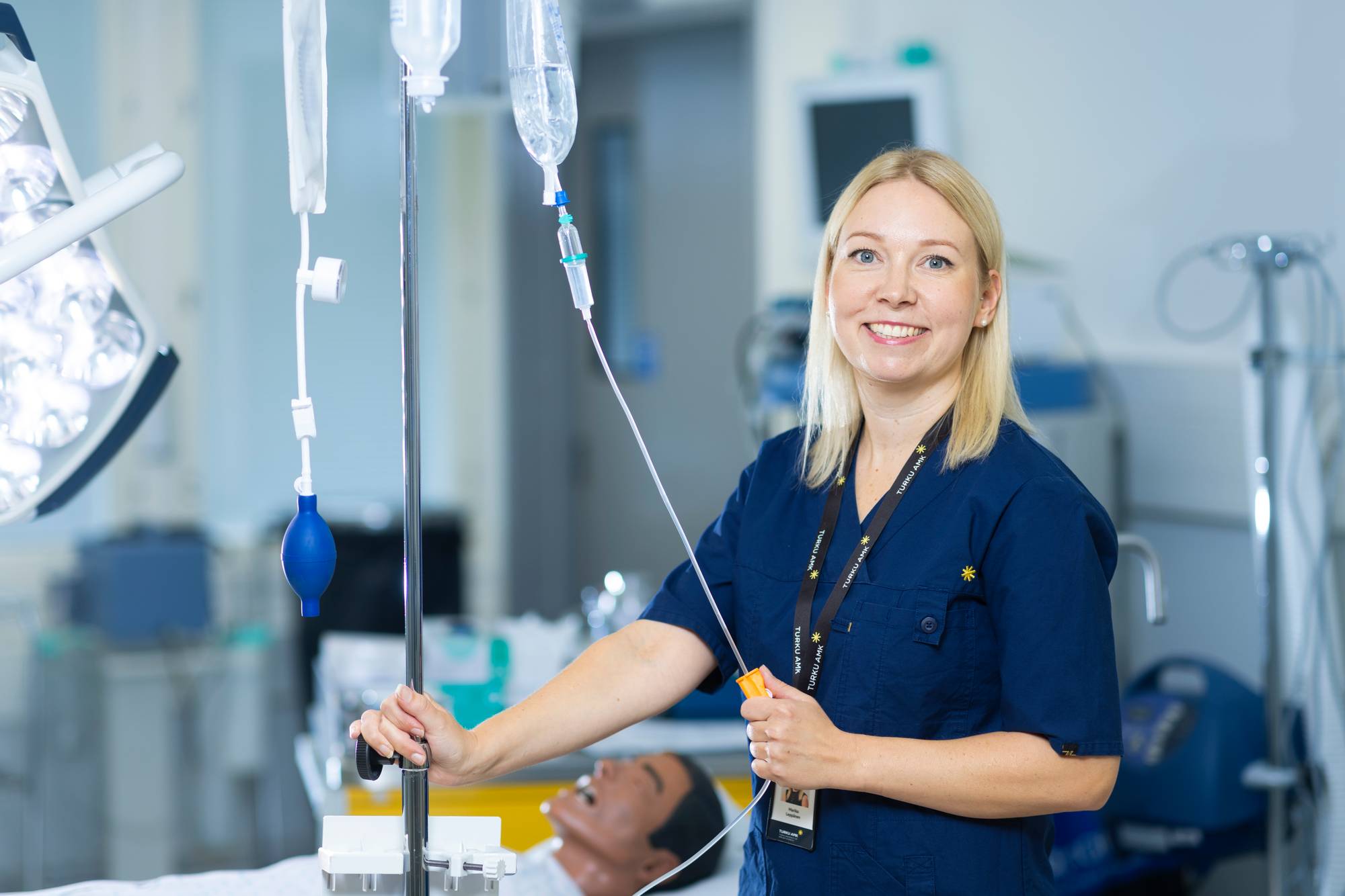 Marika Leppänen opettaa hoitotyön perusteita, lääkehoitoa ja nestehoitoa ensimmäisen vuoden sairaanhoitajaopiskelijoille. Lisäksi hän pitää muutamia syventäviä kursseja.