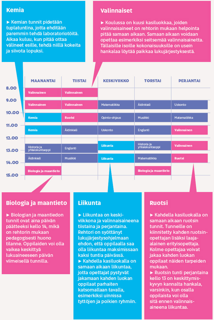 Tärkeintä on tehdä lukujärjestyksistä toimivat oppilaille.