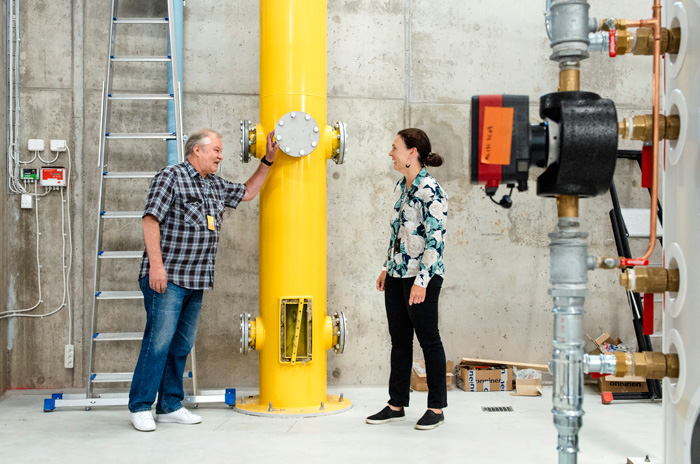 – Rakennuksen alla on maalämpökaivo, katolla lämpö- ja sähkökeräimet sekä laboratoriossa erilaisia lämmöntuotantolaitteita, joiden avulla tuotamme parhaimmillaan lähes puolet kampuksen tarvitsemasta lämpöenergiasta, kehaisee laboratorioinsinööri Ari Hokkanen.