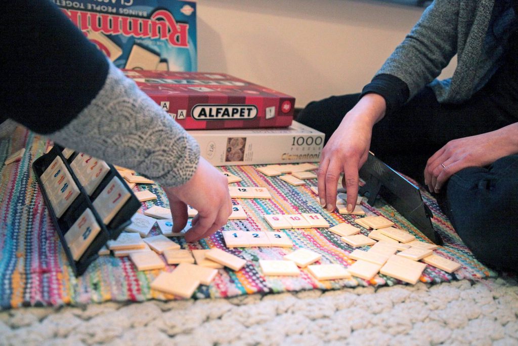 Välillä on mukava pelata vaikkapa lautapelejä Hennan kotona. Molemmille tärkeitä ovat myös juttutuokiot teekupposen äärellä.